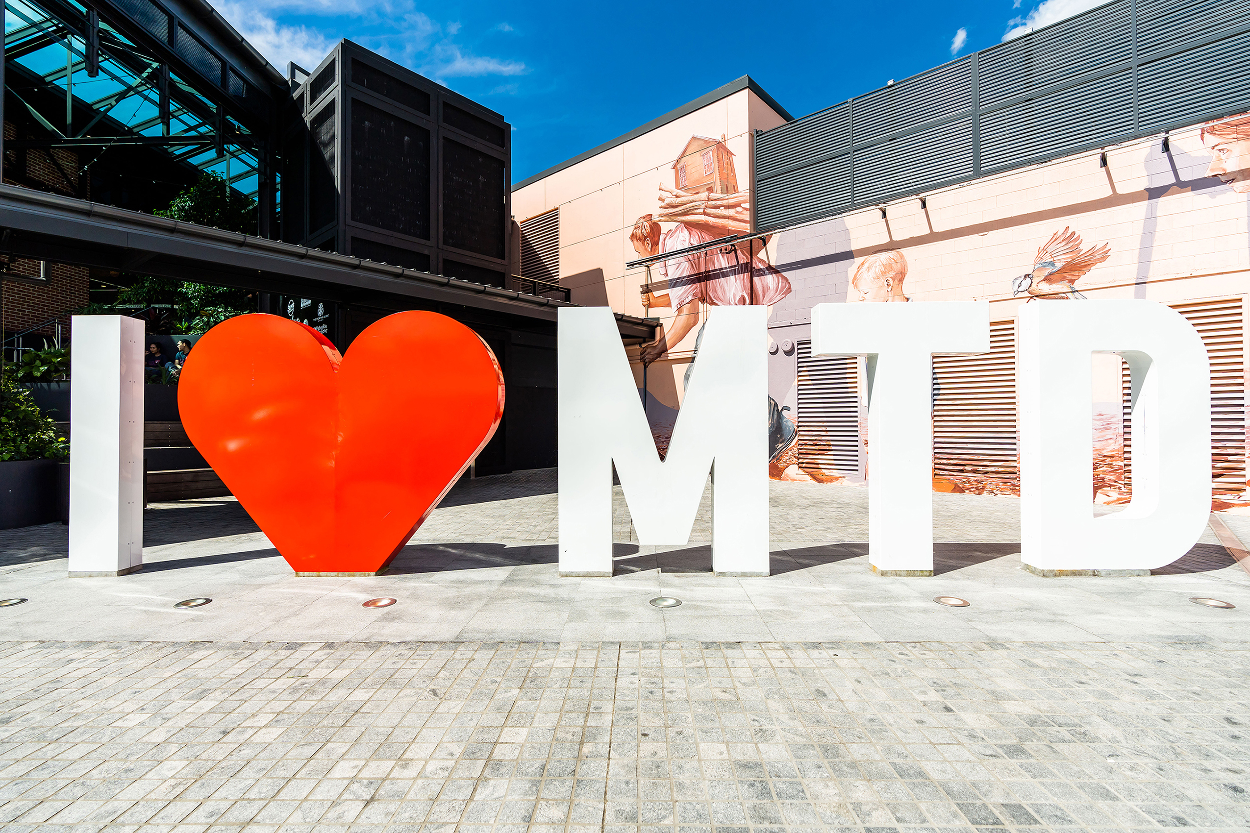 One project involved the use of recycled plastic collected from local surrounding schools to be manufactured as wheel stops across 2381 car bays. It also involved the manufacturing and installation of 1341 signs inside the centre, including over a kilometre of cross-hatching, pedestrian crossing and curb highlighting across the centre.