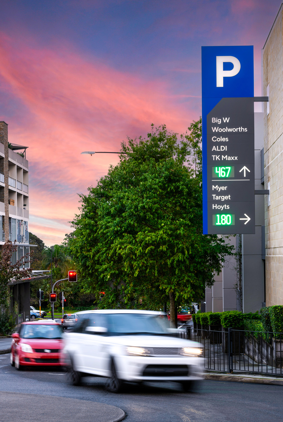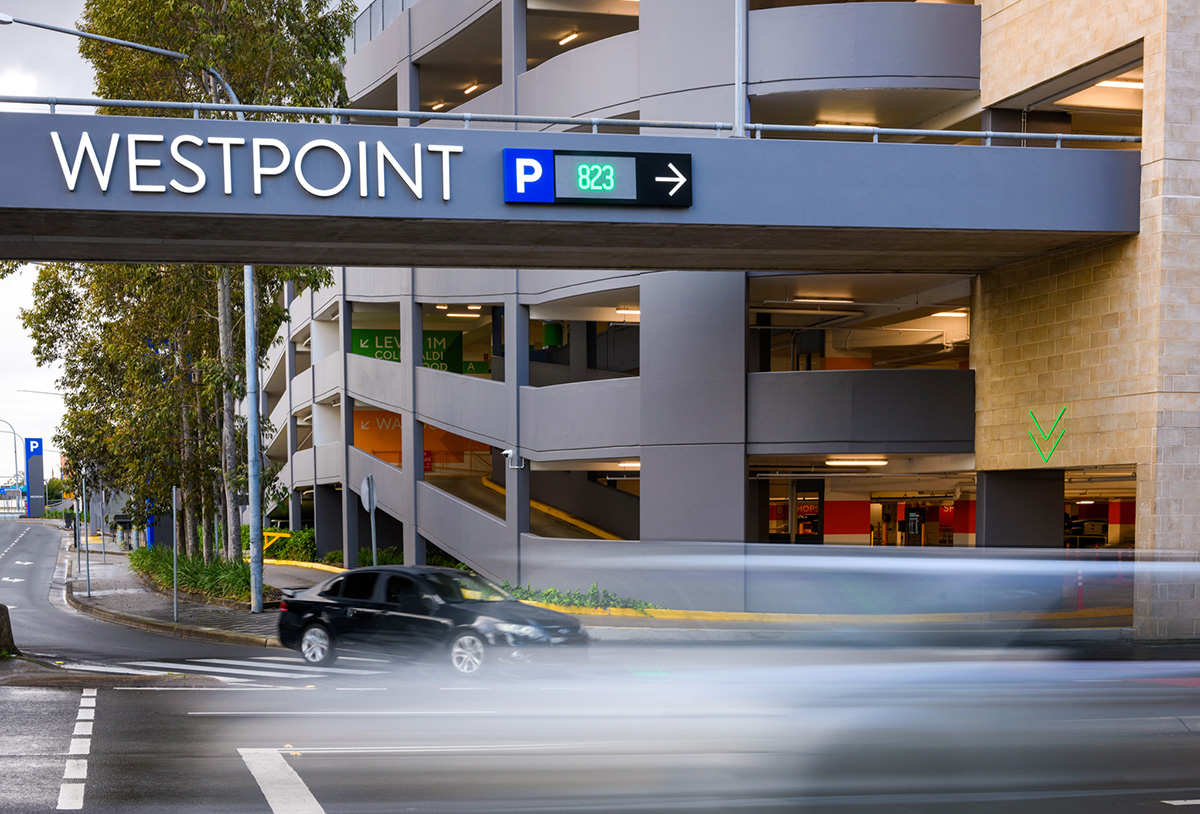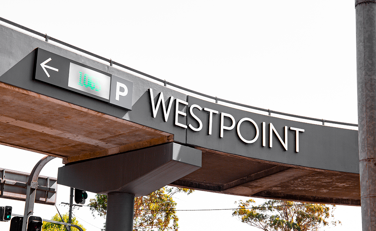 The comprehensive wayfinding solution seamlessly integrated with the rollout of a parking guidance system in 2021. OMG! manufactured and installed 230 aluminum wayfinding signs strategically indicating parking availability across 4,300 parking bays, ensuring customer convenience at Westpoint.